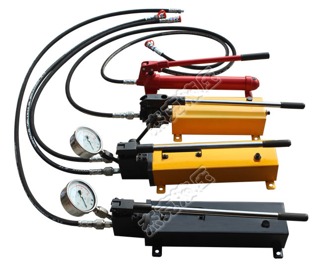 手動油泵站系列 | 手動油泵體積小,重量輕,結(jié)構(gòu)緊湊,操作簡單,超高壓,小排量,配有低壓泵以提高工作效率。可直接對壓力容器進行壓力試驗,配備油缸及機具可以進行 起重、頂升、彎曲、校直、拉伸、沖孔、鉚接、拆裝等作業(yè)。 | 型號 | 最高壓力Mpa | 排量ml/次 | 手搖力 N | 郵箱容量 L | 重量 KG | 外形尺寸 (mm) | 備注 | 高壓 | 低壓 | SYB-1 | 63 | 2.3 | 12.5 | 500 | 1 | 7 | 550×130×170 | 雙泵單油路 | SYB-2 | 63 | 2.3 | 12.5 | 500 | 3 | 10 | 570×190×170 | 雙泵單油路 | 2SYB-1 | 63 | 2.3 | 12.5 | 450 | 4 | 15 | 610×230×160 | 雙泵雙油路 | 2SYB-2 | 63 | 2.3 | 12.5 | 450 | 8 | 18 | 610×350×180 | 帶手動換向閥 | 2SYB-3 | 63 | 2.3 | 12.5 | 450 | 10 | 22 | 700×420×180 | 超超高壓手動油泵 | 型號 | 最高壓力Mpa | 排量ml/次 | 手搖力 N | 郵箱容量 L | 重量 KG | 外形尺寸(mm) | 備注 | CYB-1 | 160 | 1.6 | 500 | 4.5 | 6 | 800×220×190 | 雙泵雙油路 帶手動換向閥 | CYB-2 | 250 | 1 | 500 | 4 | 11 | 800×220×191 | 單泵單油路 |